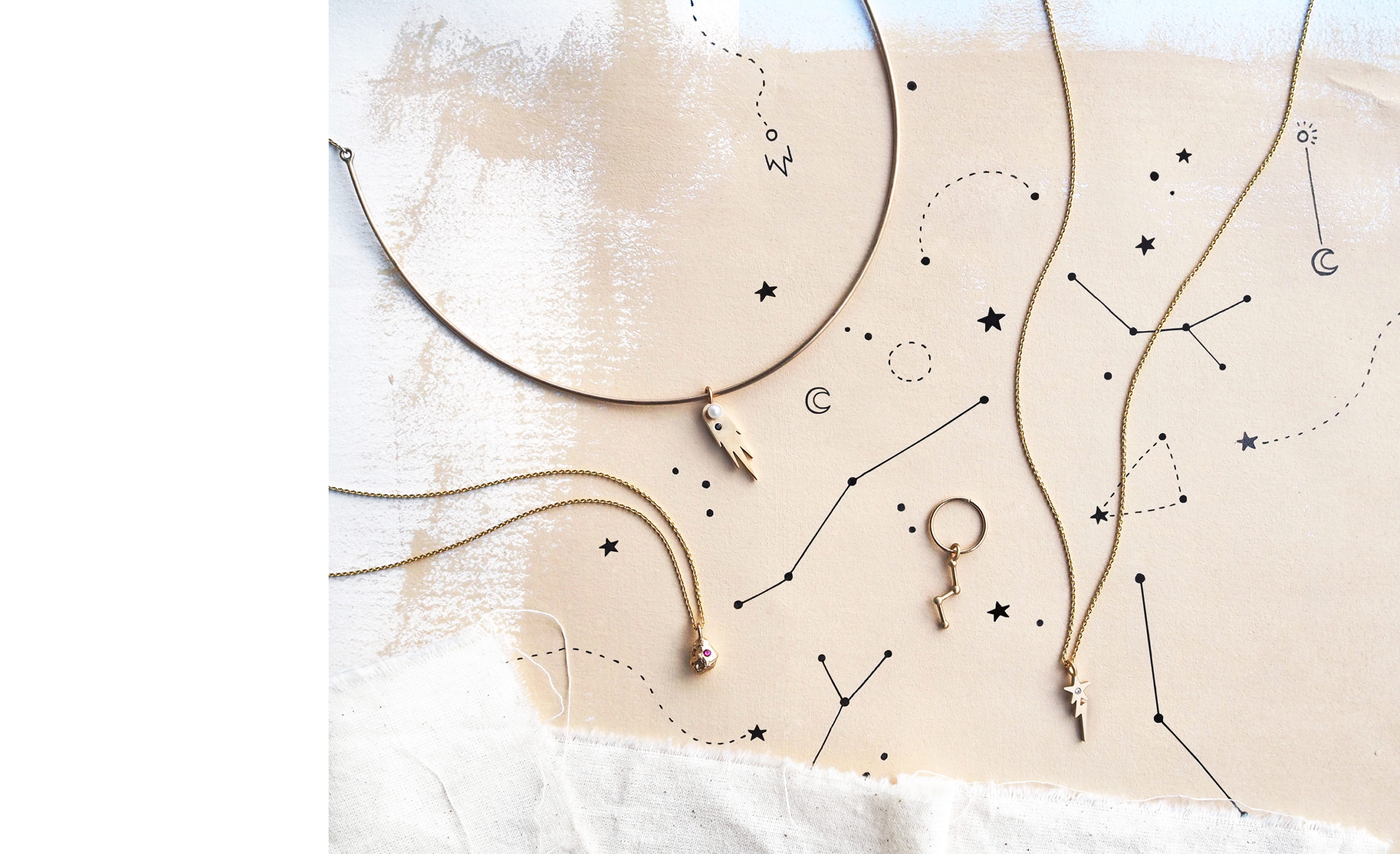 The Lost Galaxy jewellery collection is a collaboration between jeweller Marina Antoniou and artist Lauren Webster.